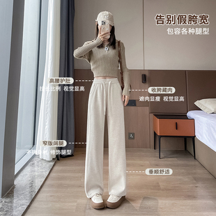 雪中飞2025秋新款 显高显瘦舒适保暖米色温柔 女士长加绒阔腿休闲裤