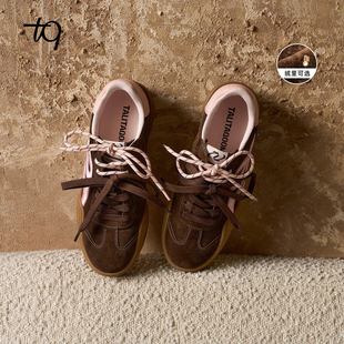 Talitaqoom焦糖鞋 板鞋 2025秋冬加绒新款 tq女鞋 厚底德训鞋 明星同款