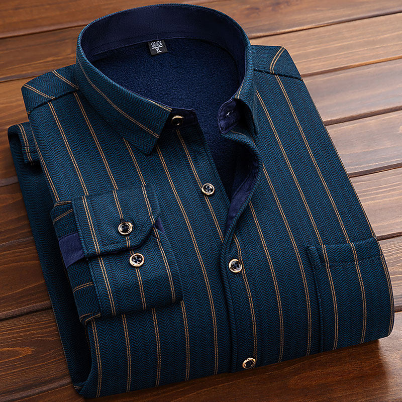 保暖衬衫 男士 加绒加厚款 长袖 衬衣 2025新款 条纹爸爸男装 秋冬季