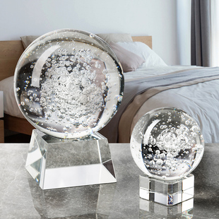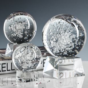 大小号透明水晶球气泡球摆件 饰品风水轮假山流水摆件 家居客厅装
