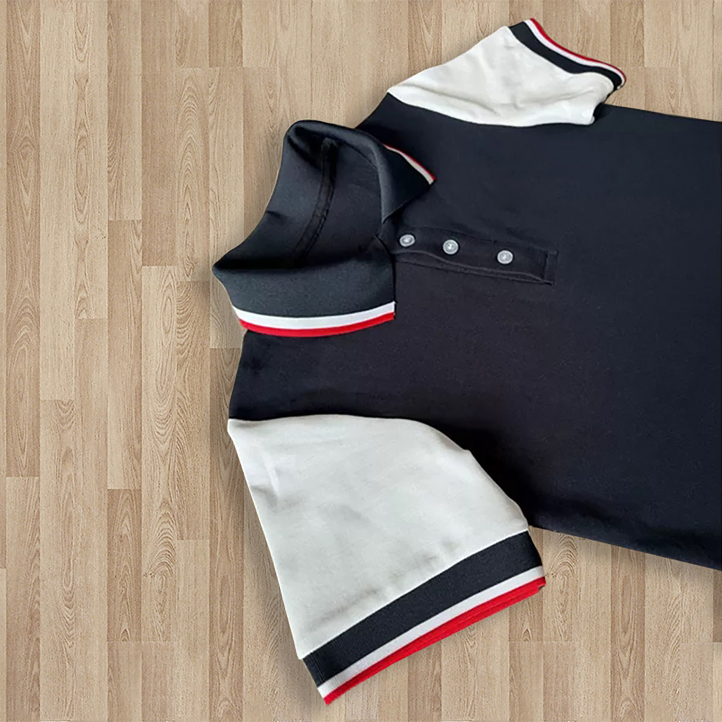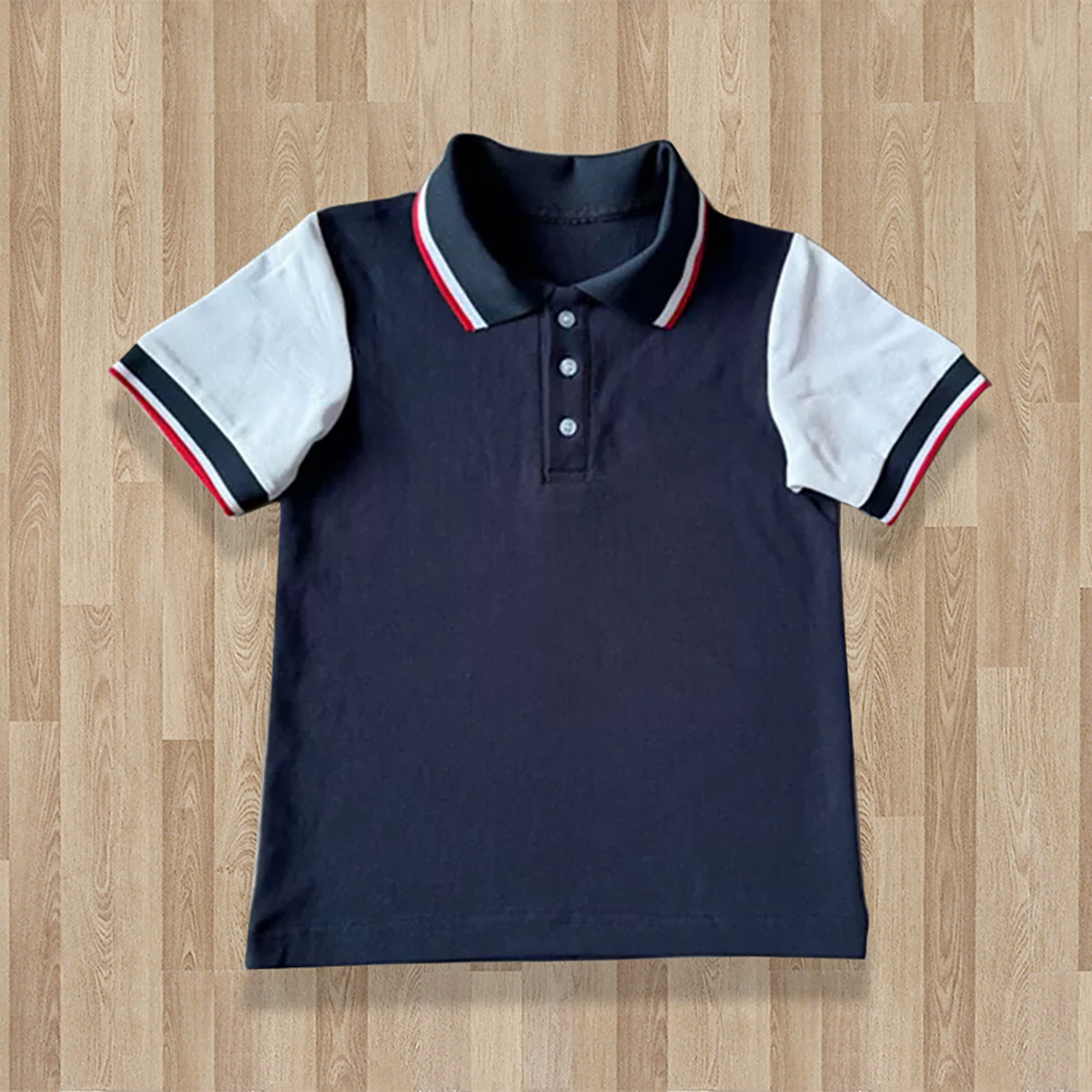 学生校服藏蓝色拼白短袖 上衣夏中小学生舒适运动休闲夏翻领pole衫