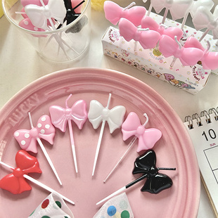 韩系ins珠光白色蝴蝶结蜡烛蛋糕装 扮 饰摆件小仙女生日派对插件装