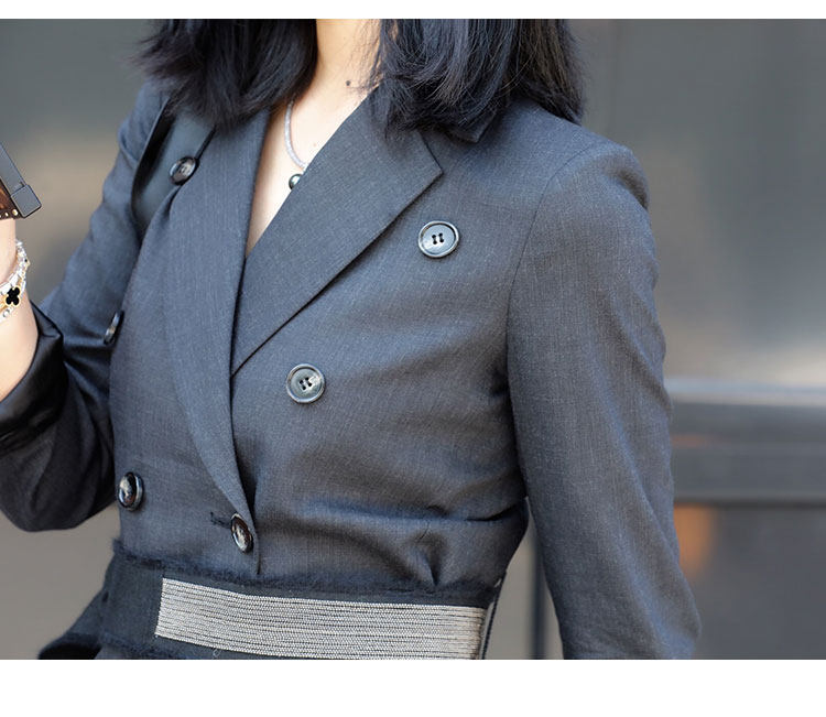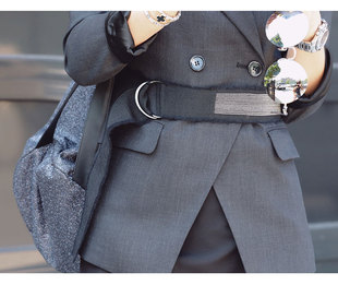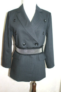 外套 西装 S08003 灰色薄羊毛干练双排扣钉珠腰带 PENNY自制