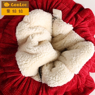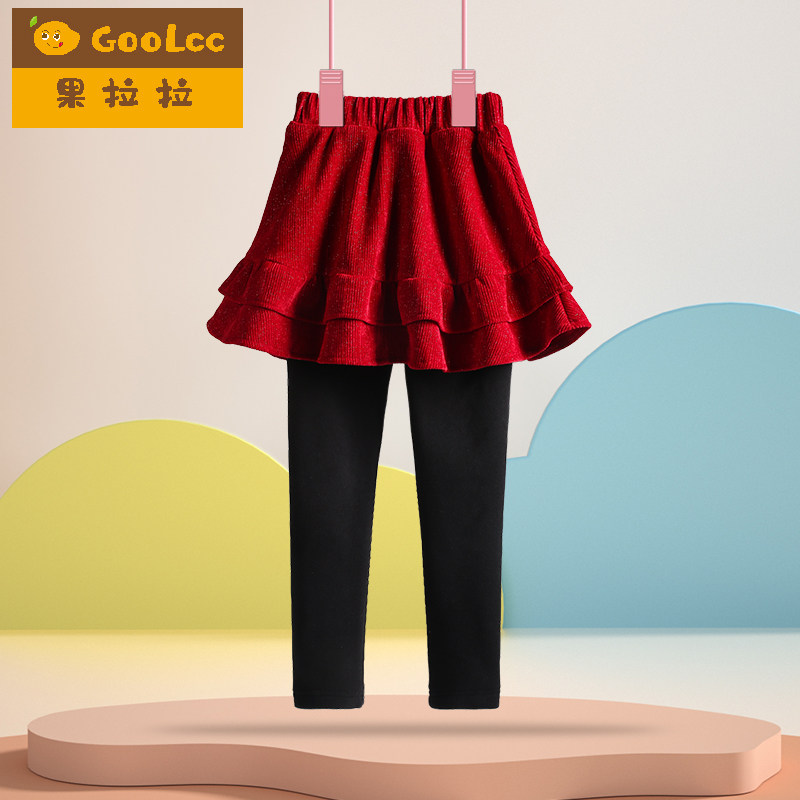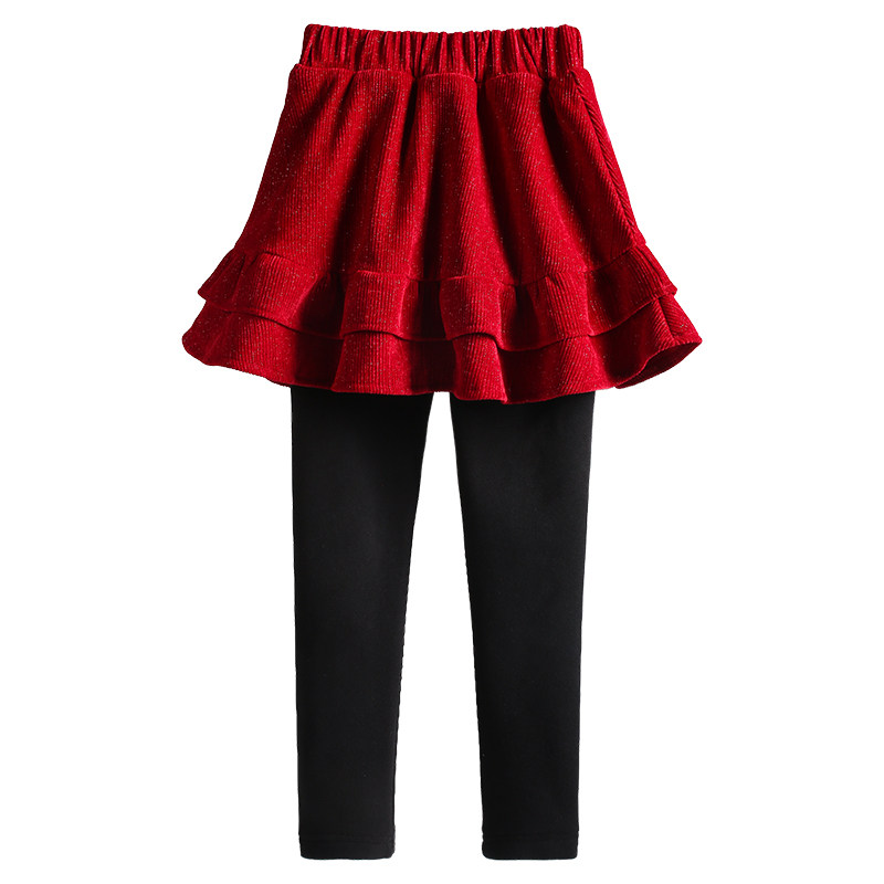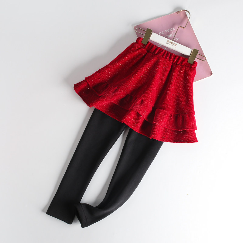 儿童女宝宝棉裤 大童加绒加厚假两件裙裤 外穿秋冬款 红色女童打底裤