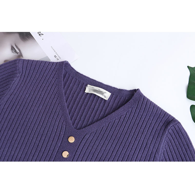 长袖 胖mm春季 宽松百搭大码 2026纯色纽扣打底衫 上衣 V领坑条针织衫