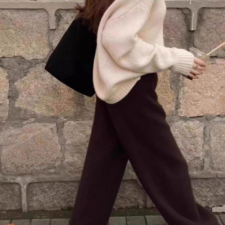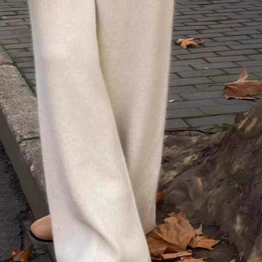 女高腰加厚垂感羊绒直筒小个子羊绒拖地裤 秋冬新款 羊毛针织阔腿裤