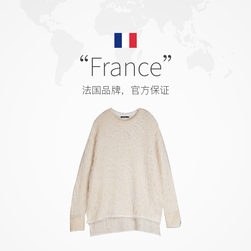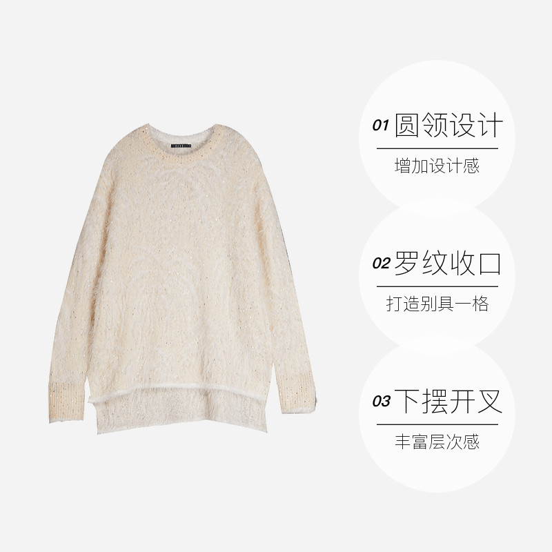 女2025春款 ELLE白色羊驼毛圆领套头针织衫 XUZHI 毛衣 自营