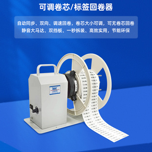 洗水唛卷纸机 不干胶打印机配件无卷芯同步收卷器热敏纸铜版 标签回卷器全自动回卷机打印机条码 标签纸回绕条码