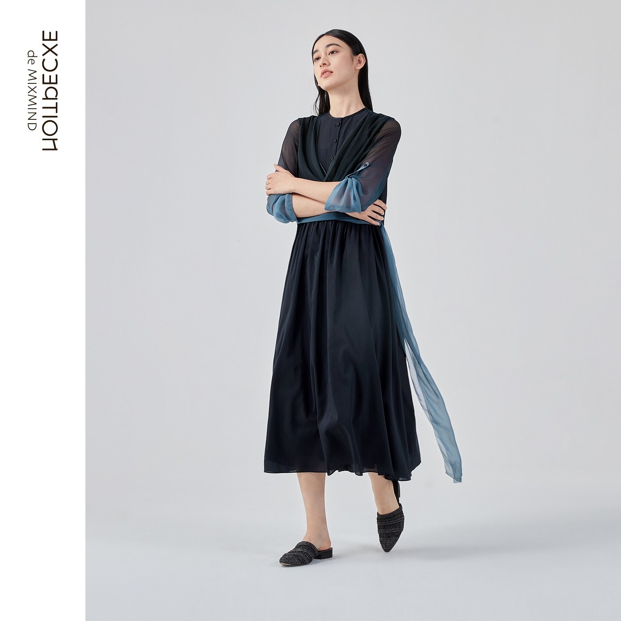 A字裙子中长裙 连衣裙丝绵飞片设计新中式 EXCEPTION例外女装 春夏款