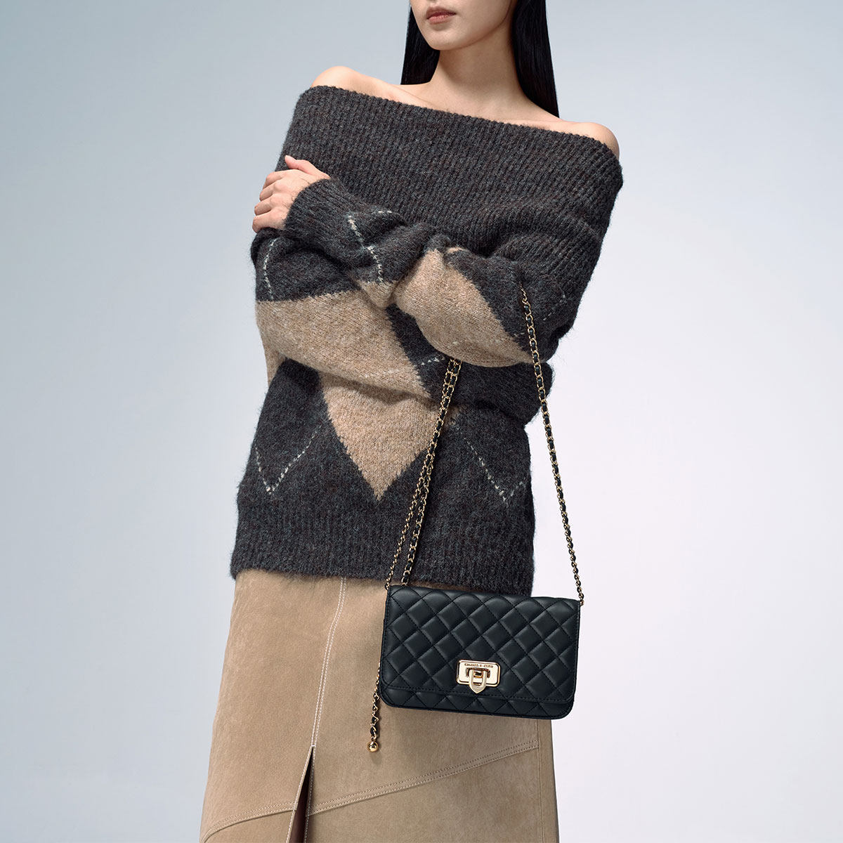 70160131经典 CHARLES&KEITH秋冬CK2 菱格链条小方包女 新年礼物