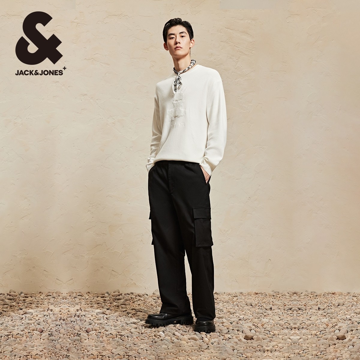 HLA 25秋冬新含桑蚕丝黑色毛衣男 海澜之家轻商务中性含羊毛针织衫
