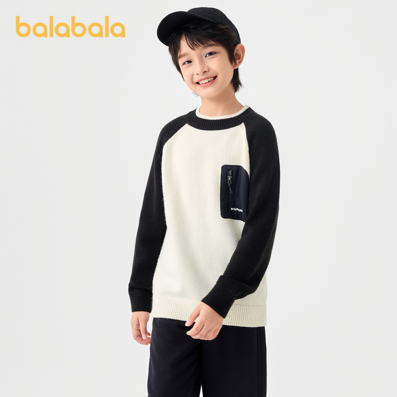 潮大童休闲百搭上衣 撞色毛衫 巴拉巴拉童装 儿童套头毛衣男童秋冬装