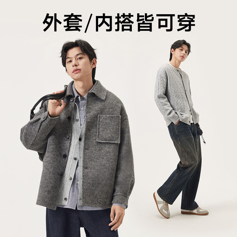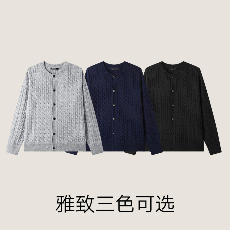 外套男25秋新品 gxg.jeans男装 多色绞花毛衣含羊毛休闲保暖针织衫