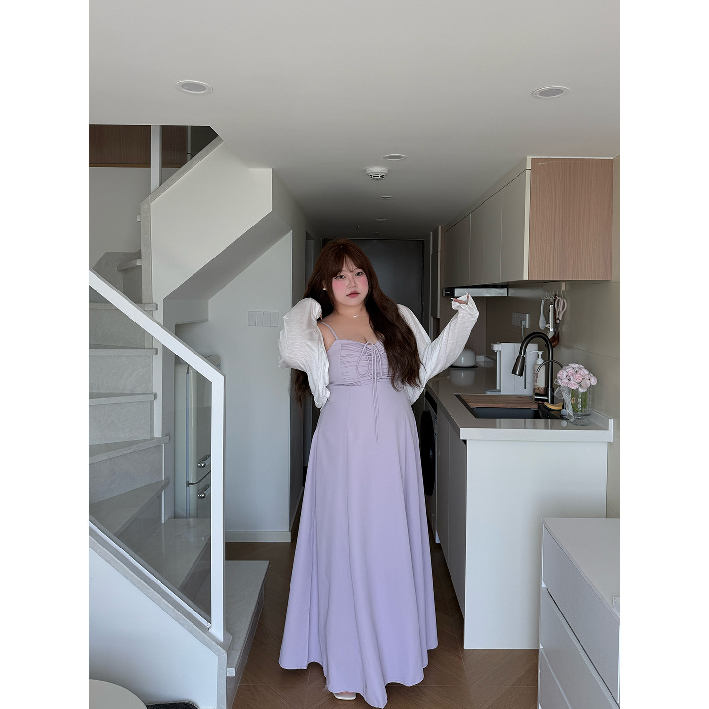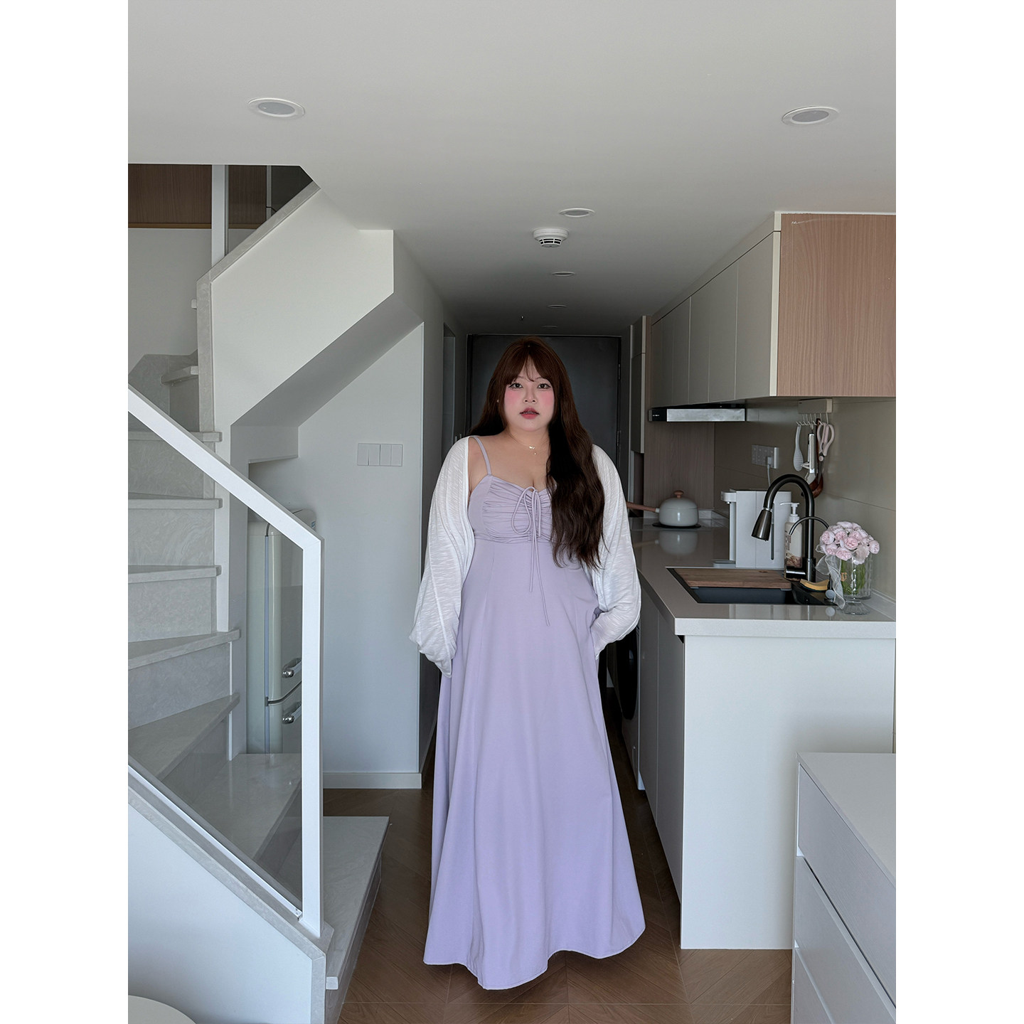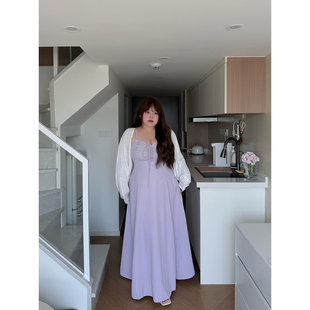 收腰吊带裙 微胖大码 安妮不火 星空波点荷叶花边连衣裙女2024新款