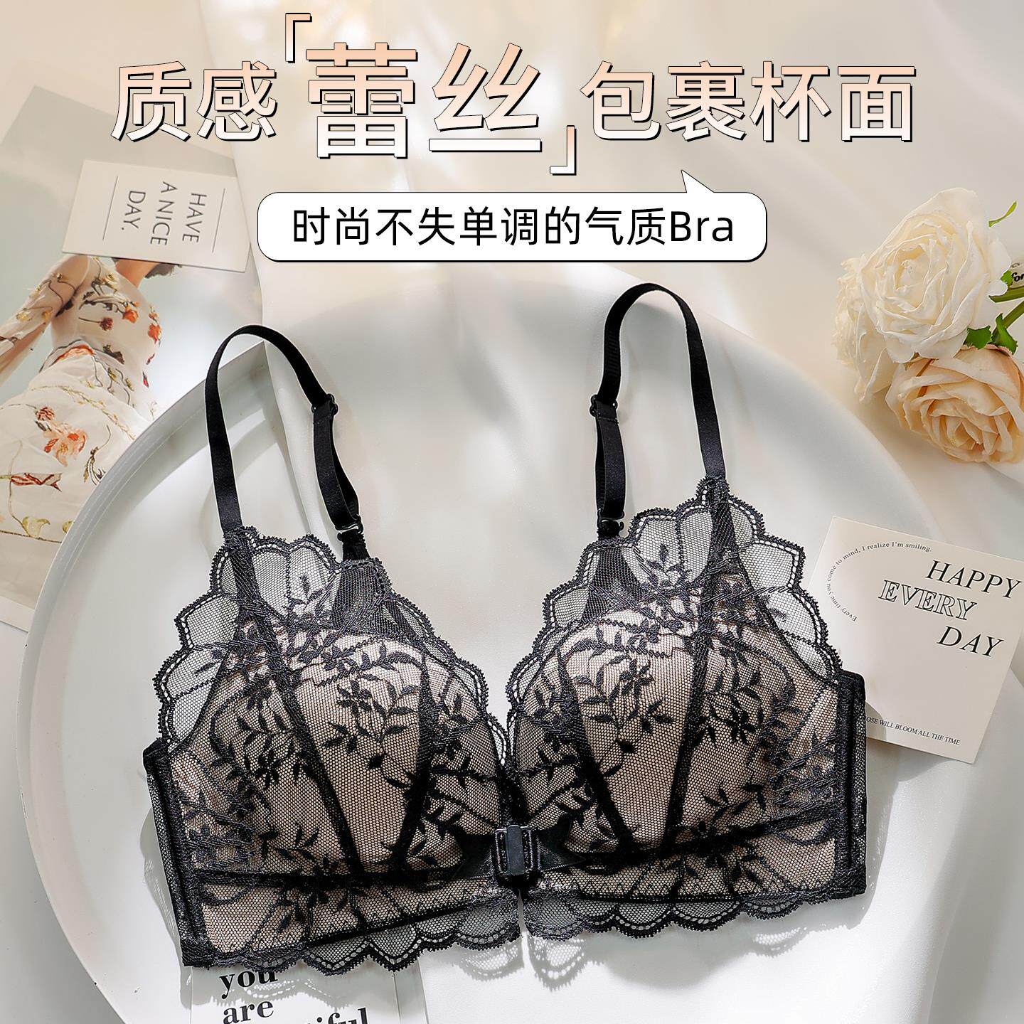 UMA 小胸聚拢收副乳防下垂蕾丝性感前扣文胸夏 MARA美背内衣女新款