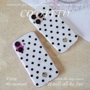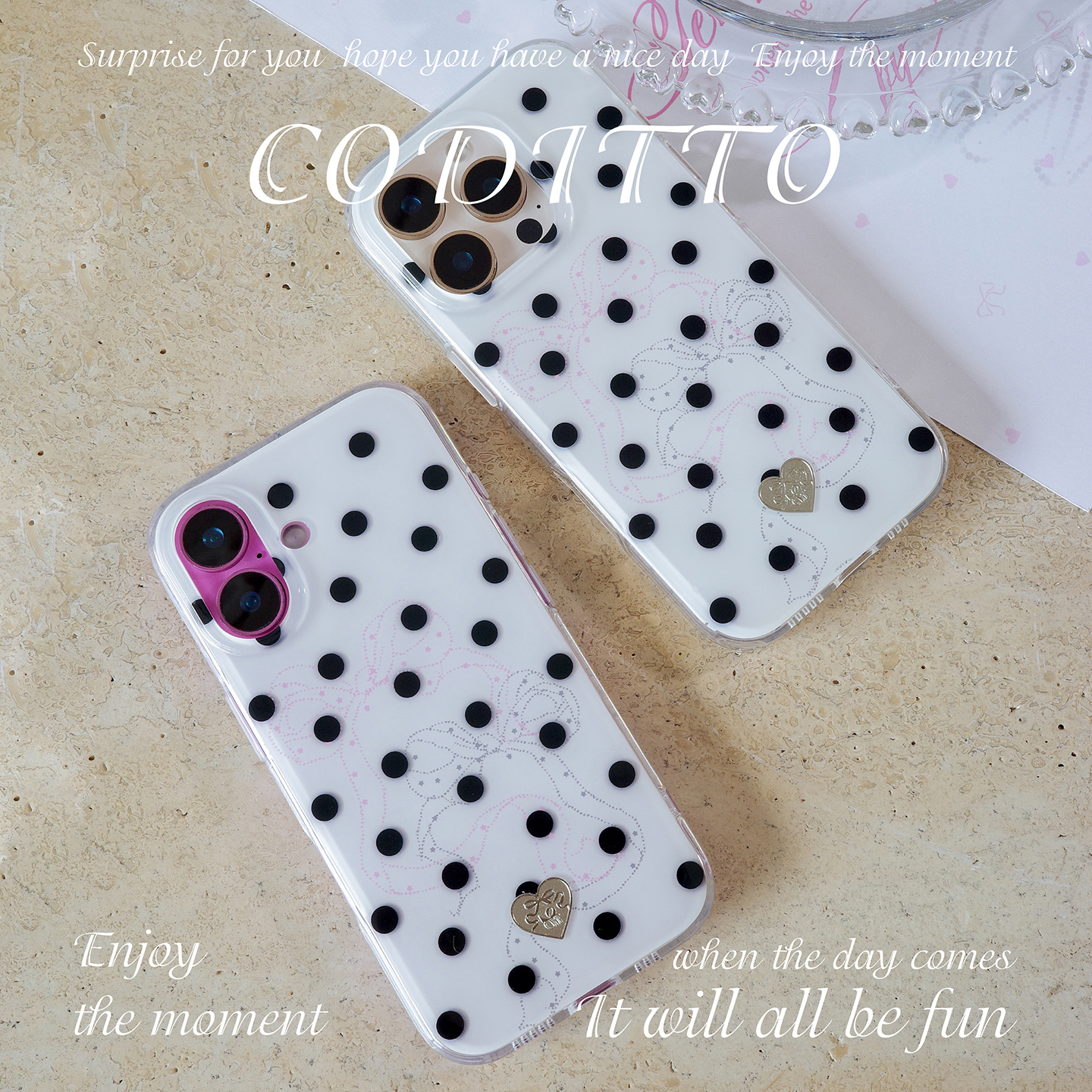 coditto蝴蝶结波点双层印花适用苹果16promax15pro16手机壳经典 简约高级iphone15promax16pro15保护套少女