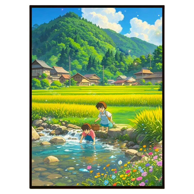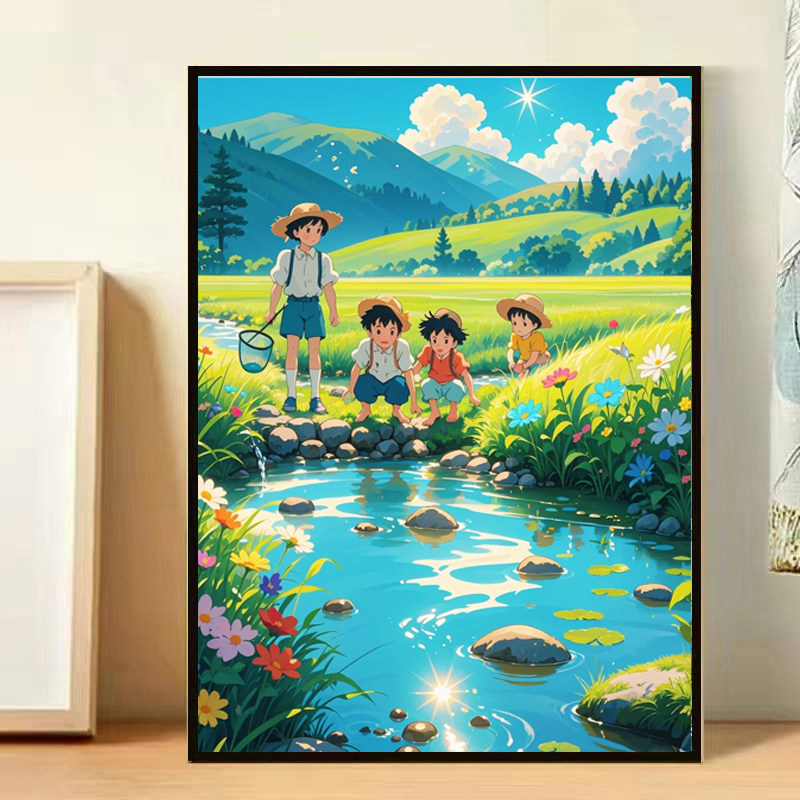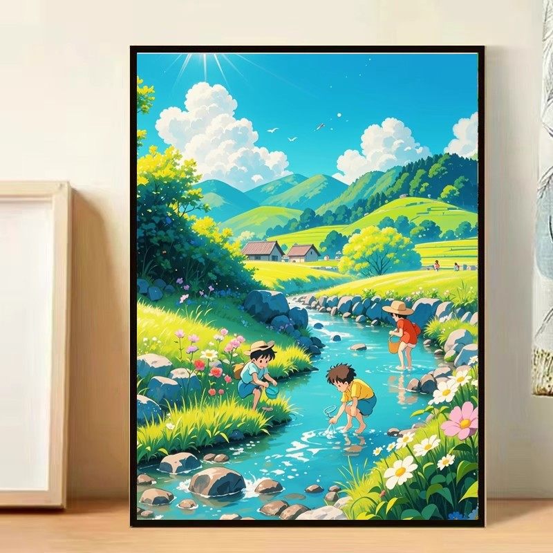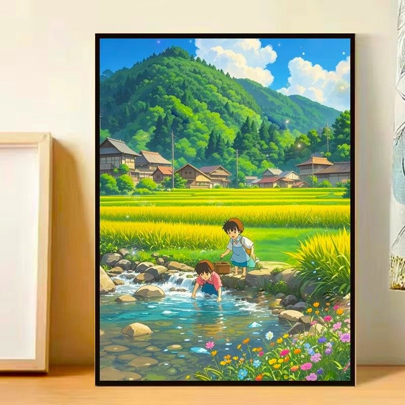治愈系宫崎骏田园风景装 饰画成品喷印卡通漫画仿油画卧室客厅挂画