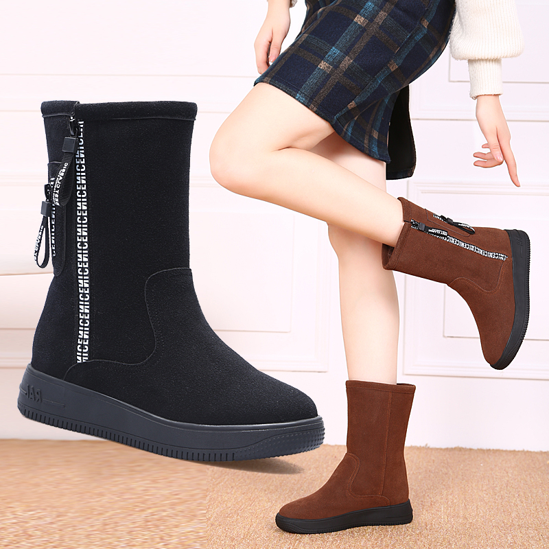 防滑抗寒短靴大码 加绒加厚棉鞋 4142 冬季 厚底中筒雪地靴女2025新款