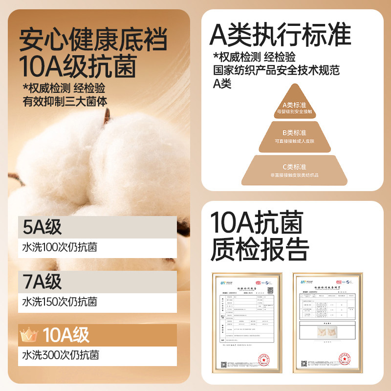 都市丽人医用级纯棉内裤 女生A类全棉抗菌裆透气无痕女士三角短裤