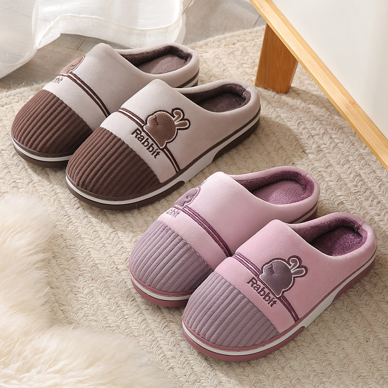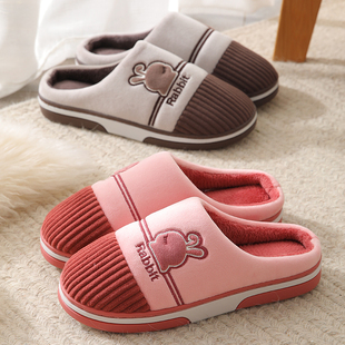 女棉拖鞋 名创优品可爱居家厚底防滑毛毛包头室内拖鞋 毛绒秋冬季