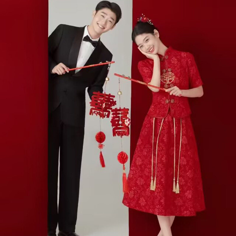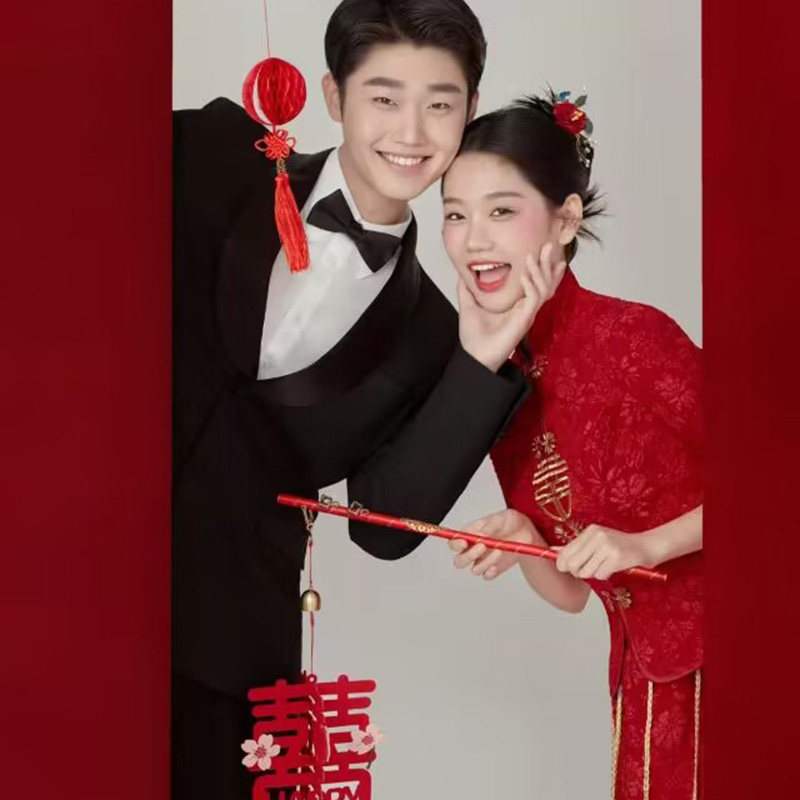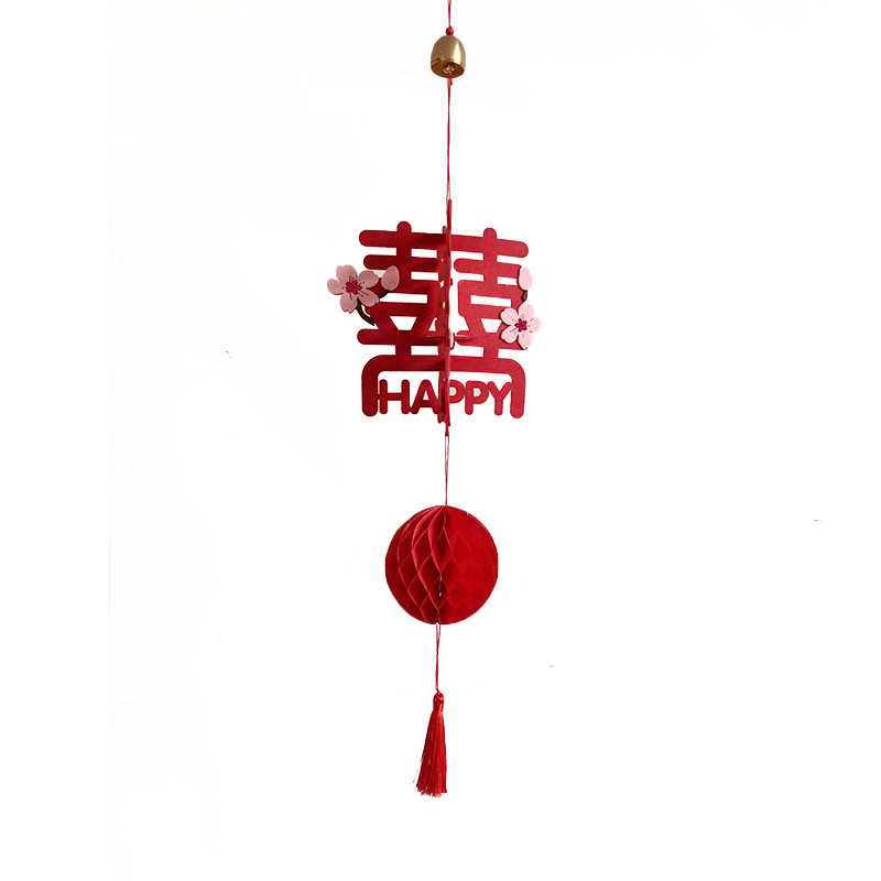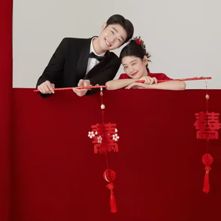 新中式 旗袍拍照手持喜字灯笼俏皮喜嫁风新娘拍照道具手拿毛毡红喜