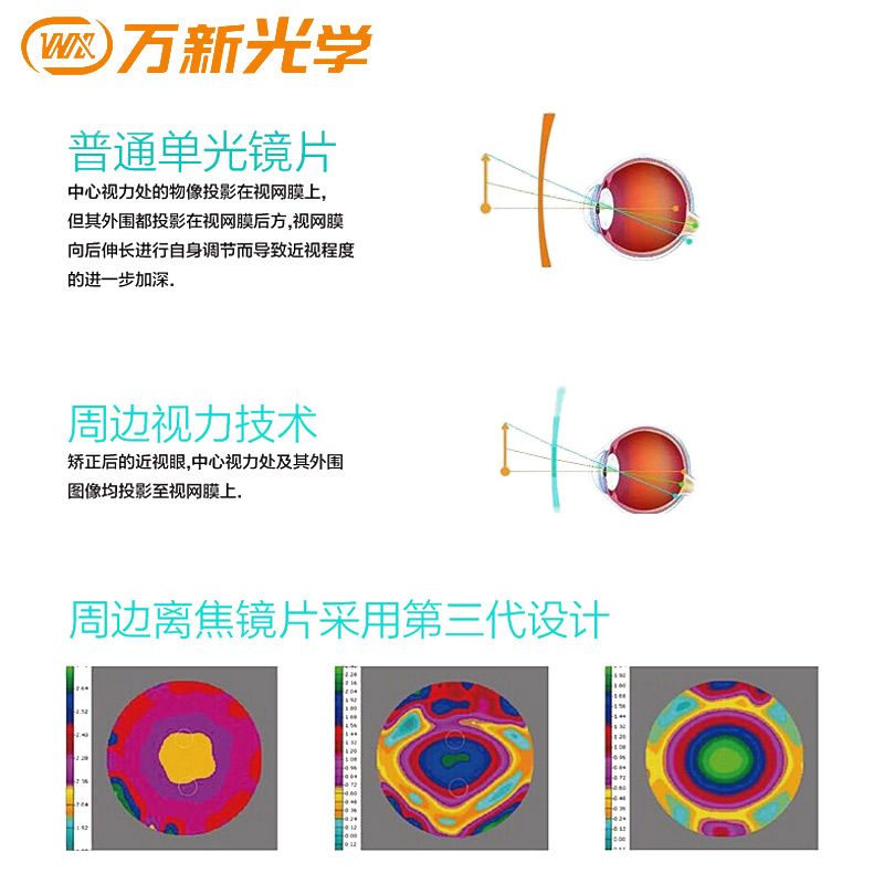 万新乐轻松镜片周边离焦近视眼镜易百分孔雀版 防蓝光学生眼镜2片