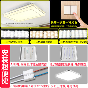 led灯盘吸顶灯改造灯板室内替换灯芯长方形客厅三色双色变光灯条