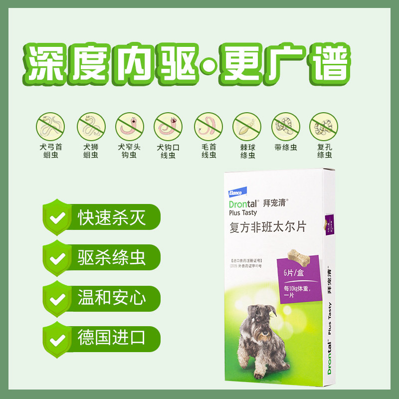 拜宠清狗狗体内驱虫药小型犬打虫药泰迪宠物幼犬金毛德国进口两粒