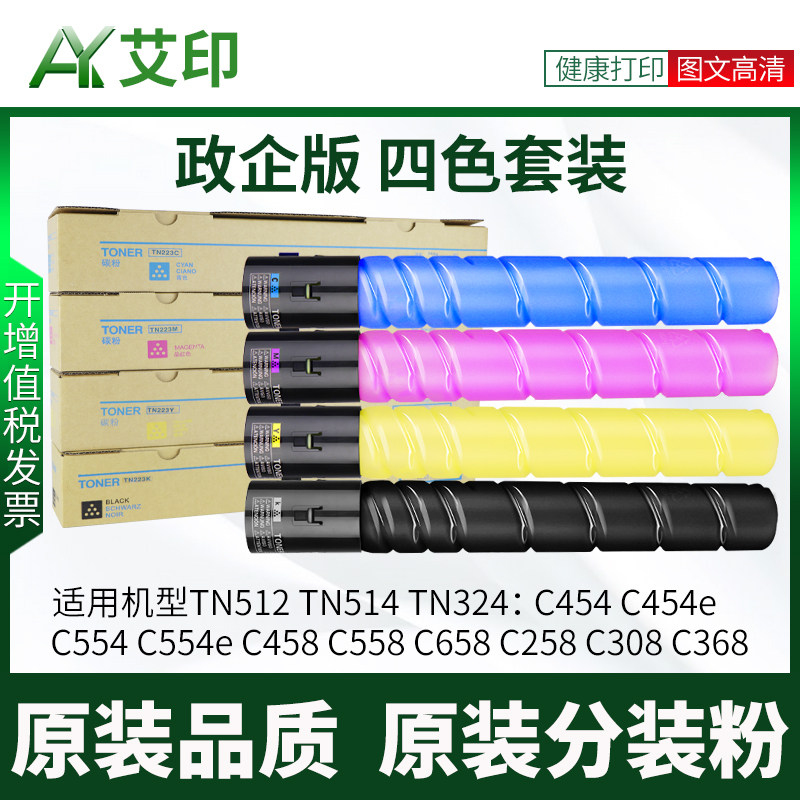 C558 C658 TN514 C554e TN324墨盒墨粉 C368柯美复印机碳粉TN512 C458 C308 适用美能达C454e粉盒Bizhub C258