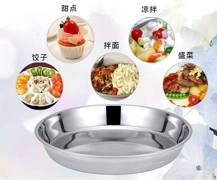 316不锈钢圆盘食品级加厚家用厨房碟子304菜盘餐盘烧烤商用盘子