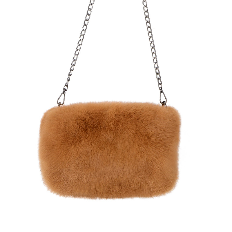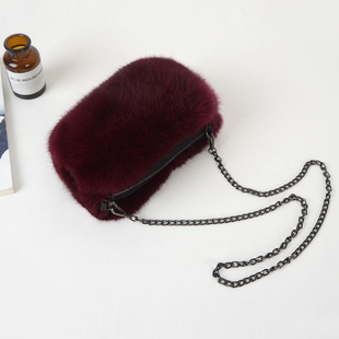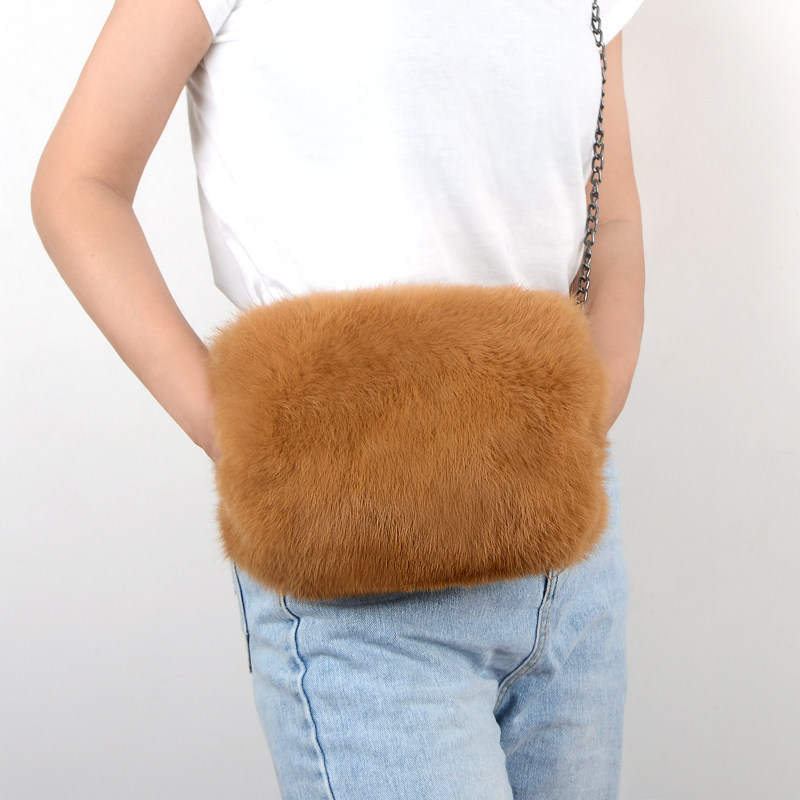 新款 秋冬兔毛皮草包包手提链条毛毛绒单肩斜跨包真毛暖手筒女 韩版
