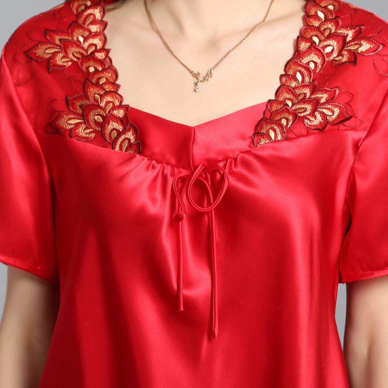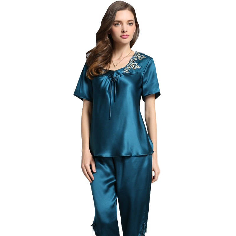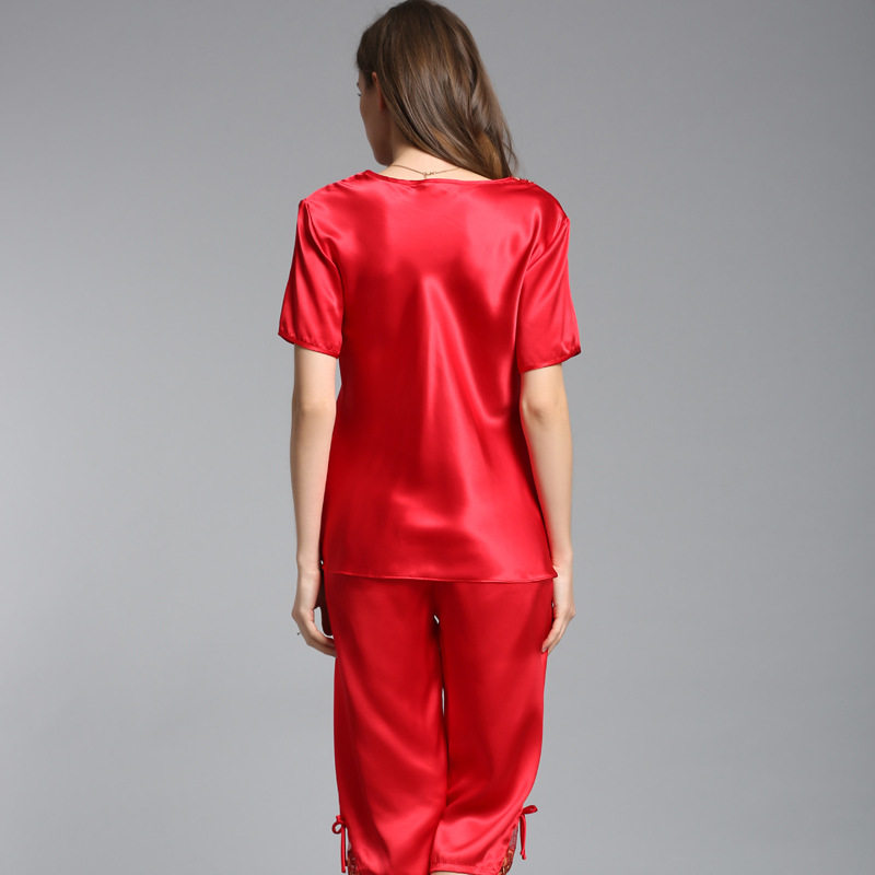 家居服套装 真丝睡衣女式 中裤 100%桑蚕丝绸短袖 性感 两件套春夏款