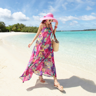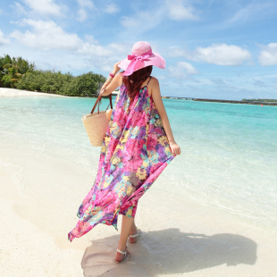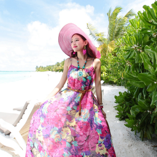 泰国巴厘岛海边度假沙滩裙女波西米亚长裙雪纺碎花吊带连衣裙