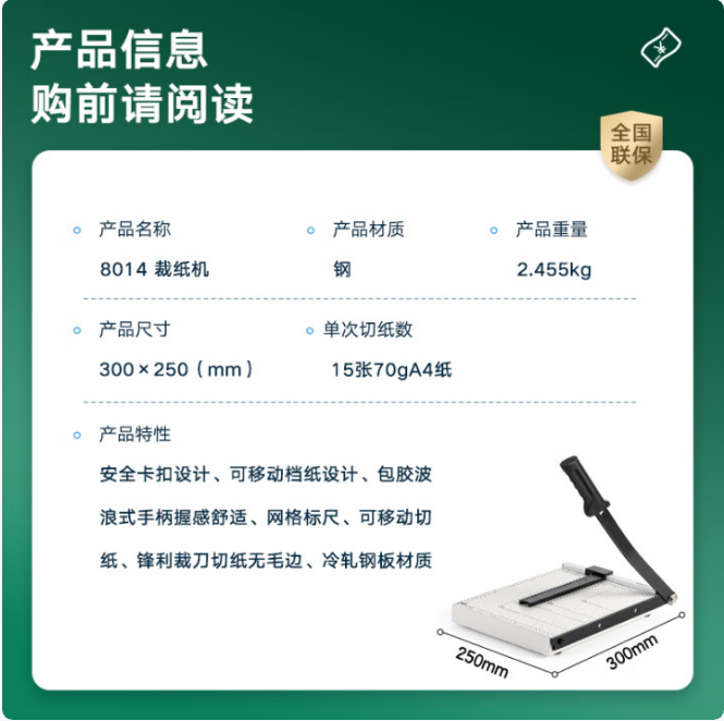 钢制切纸机A4办公用裁纸刀纸张切纸机a3相片照片裁剪器手动小型铡刀切纸闸刀手工切割器 得力8014 deli