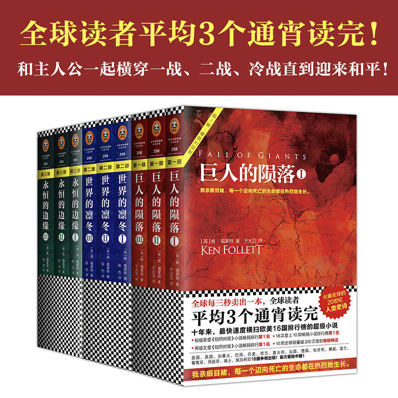 巨人 本悬疑推理科幻小说爱伦坡终身大师奖得主 世纪三部曲 凛冬套装 世界 陨落 边缘 肯福莱特著永恒 3部曲共9册全套 礼盒装