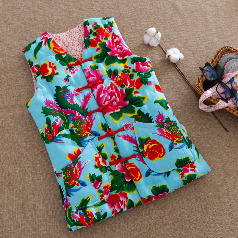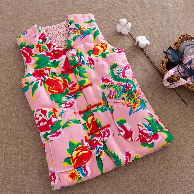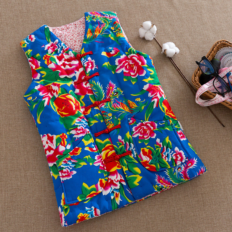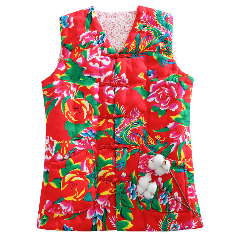 棉花手工东北大花布棉马甲 加厚保暖女士背心中国风女坎肩冬季