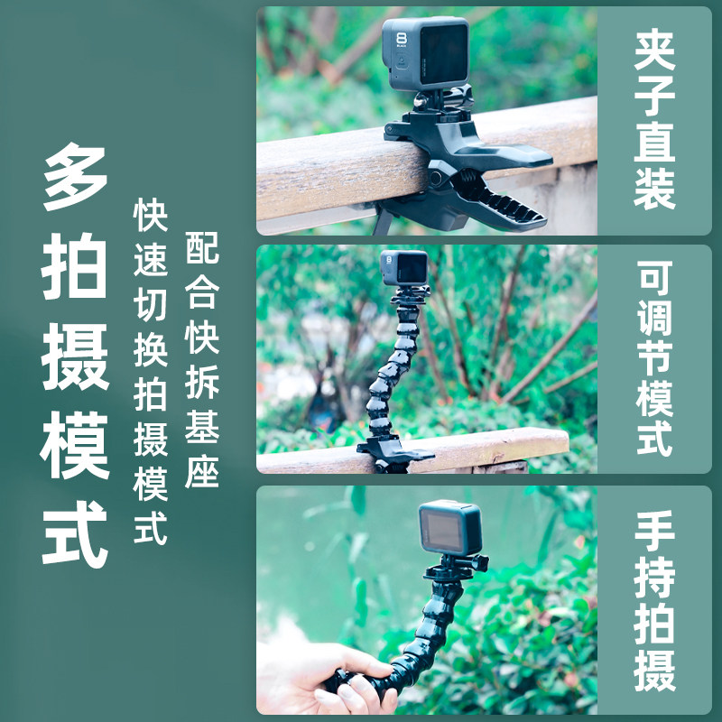 适用dji大疆gopro影石insta360运动相机大力夹action5pro柔性万向支架acepro2户外桌面固定action6 4配件