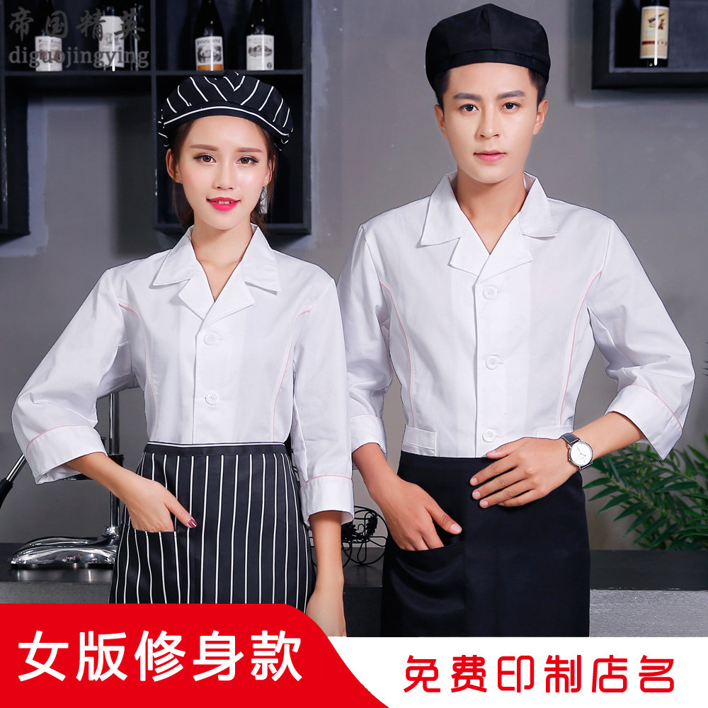 女士厨师工作服长袖 学校食堂饭店后厨房工衣烘焙师白色翻领厨师服