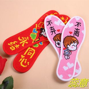 全满绣纯手工成品十字绣花鞋 垫纯棉吸汗除臭透气结婚庆礼品