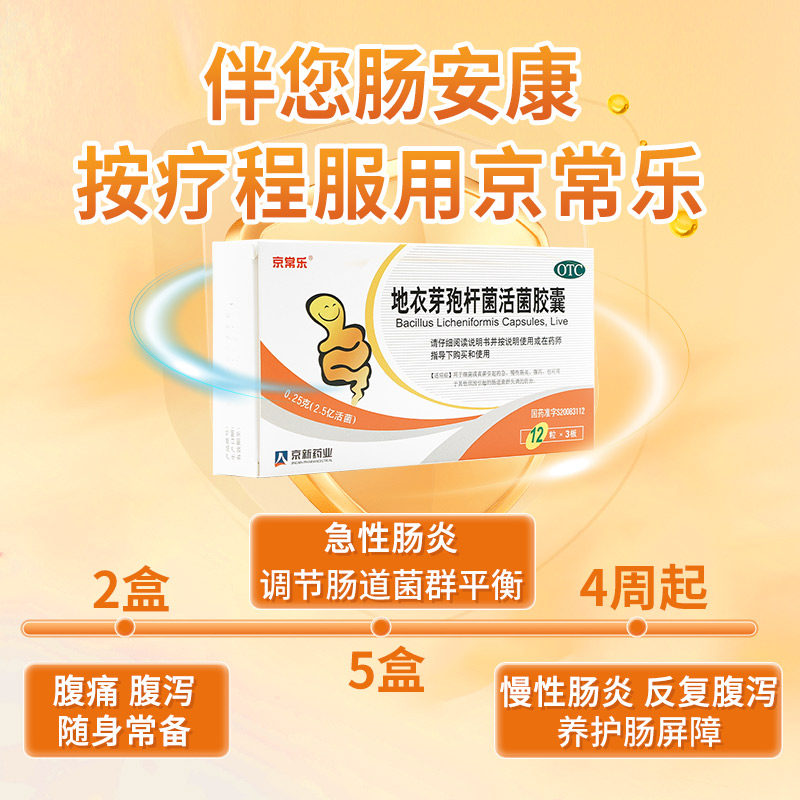 京常乐36粒地衣芽孢杆菌活菌胶囊益生菌肠炎腹泻调理肠道功能紊乱