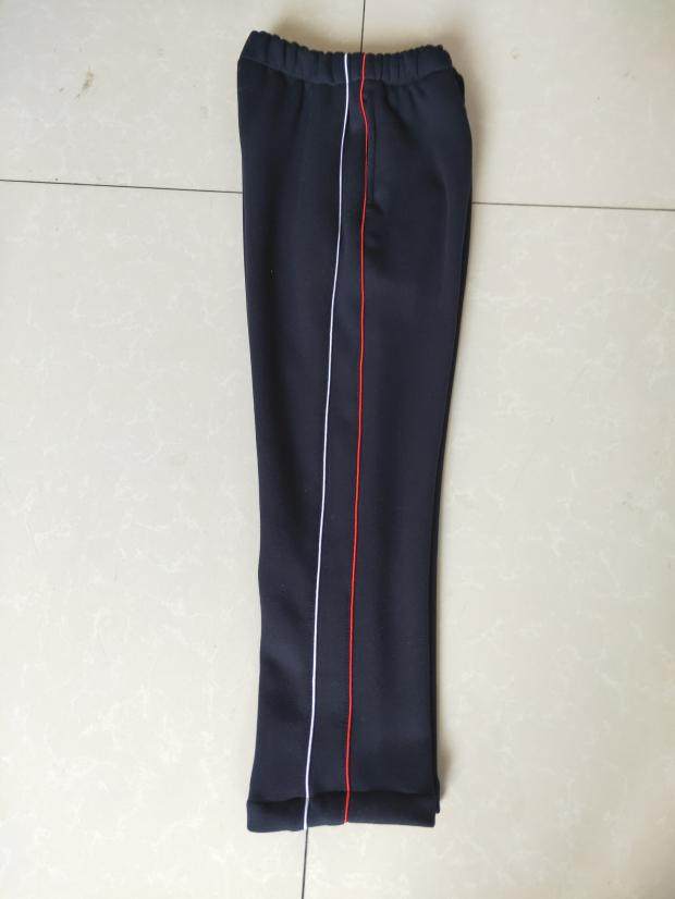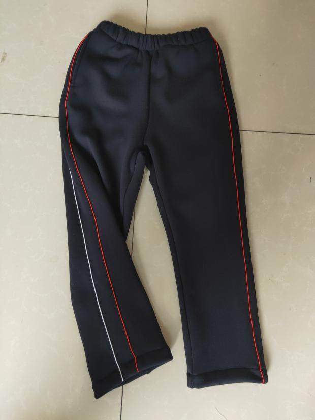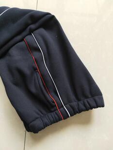 深藏蓝色加红白细条杠运动长裤 订做中小学生加绒加厚校服裤 子冬季