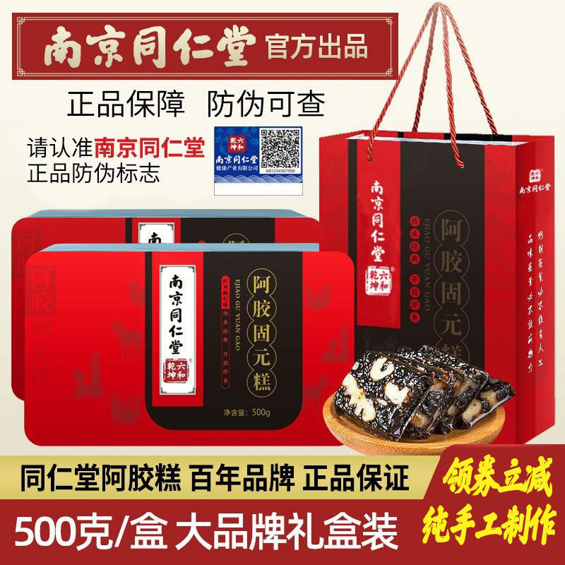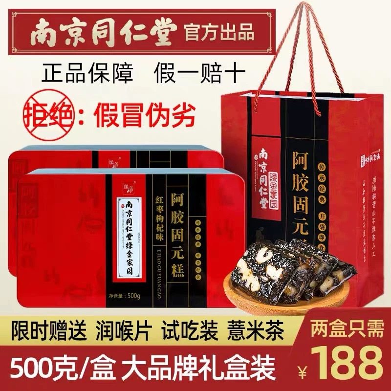同仁堂阿胶糕即食补气血纯手工山东东阿镇固元 礼盒500g 膏官方正品