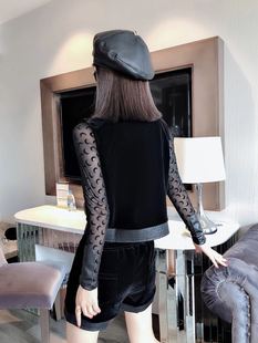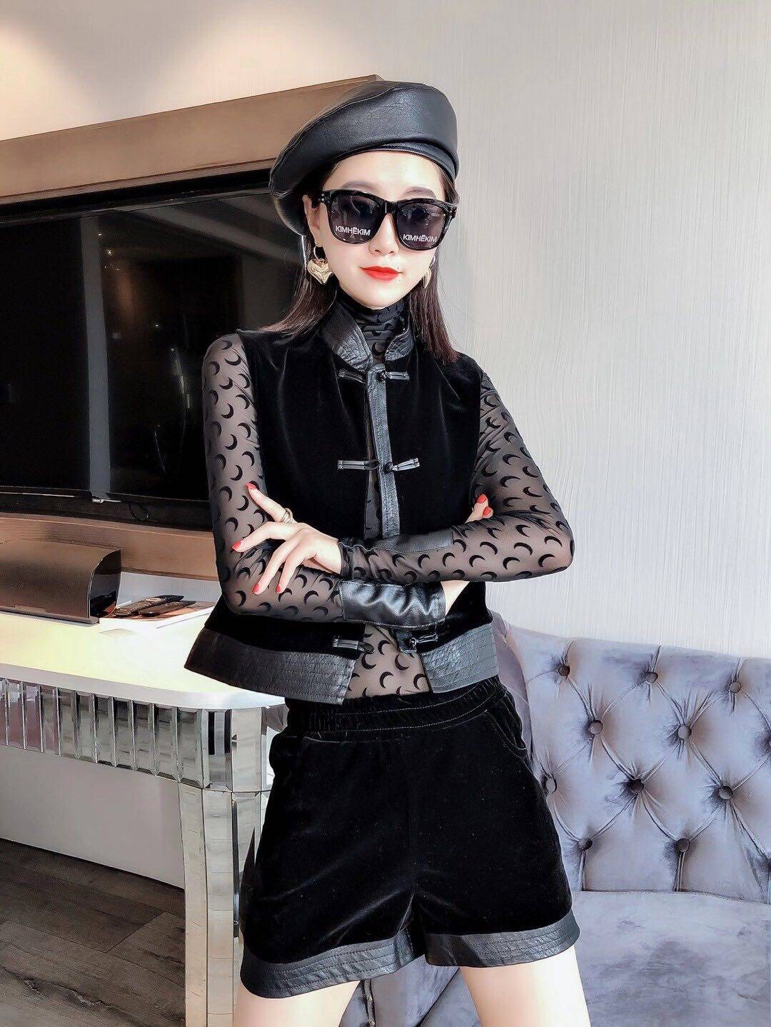 金丝绒复古立领中国风短上衣丝绒马甲背心外套搭阔腿短裤 两件套女