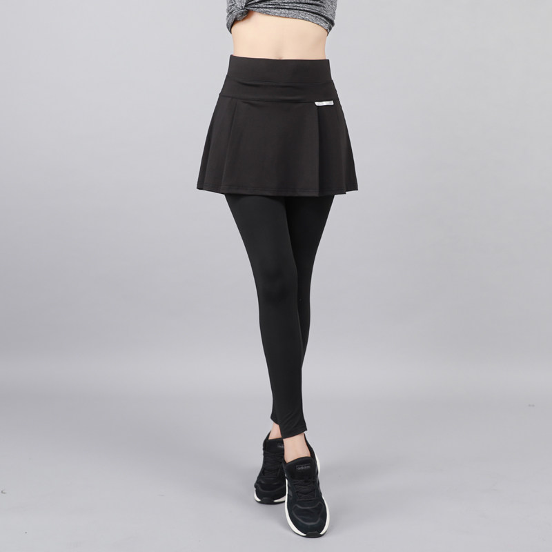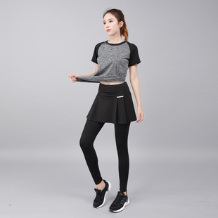 子 健身跑步高腰长裤 速干运动裤 裙女假两件薄瑜伽网球羽毛球紧身裤