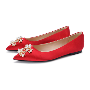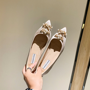 女后空秋冬水钻高跟鞋 气质裸色漆皮尖头细跟浅口单鞋 女 千金 贵气