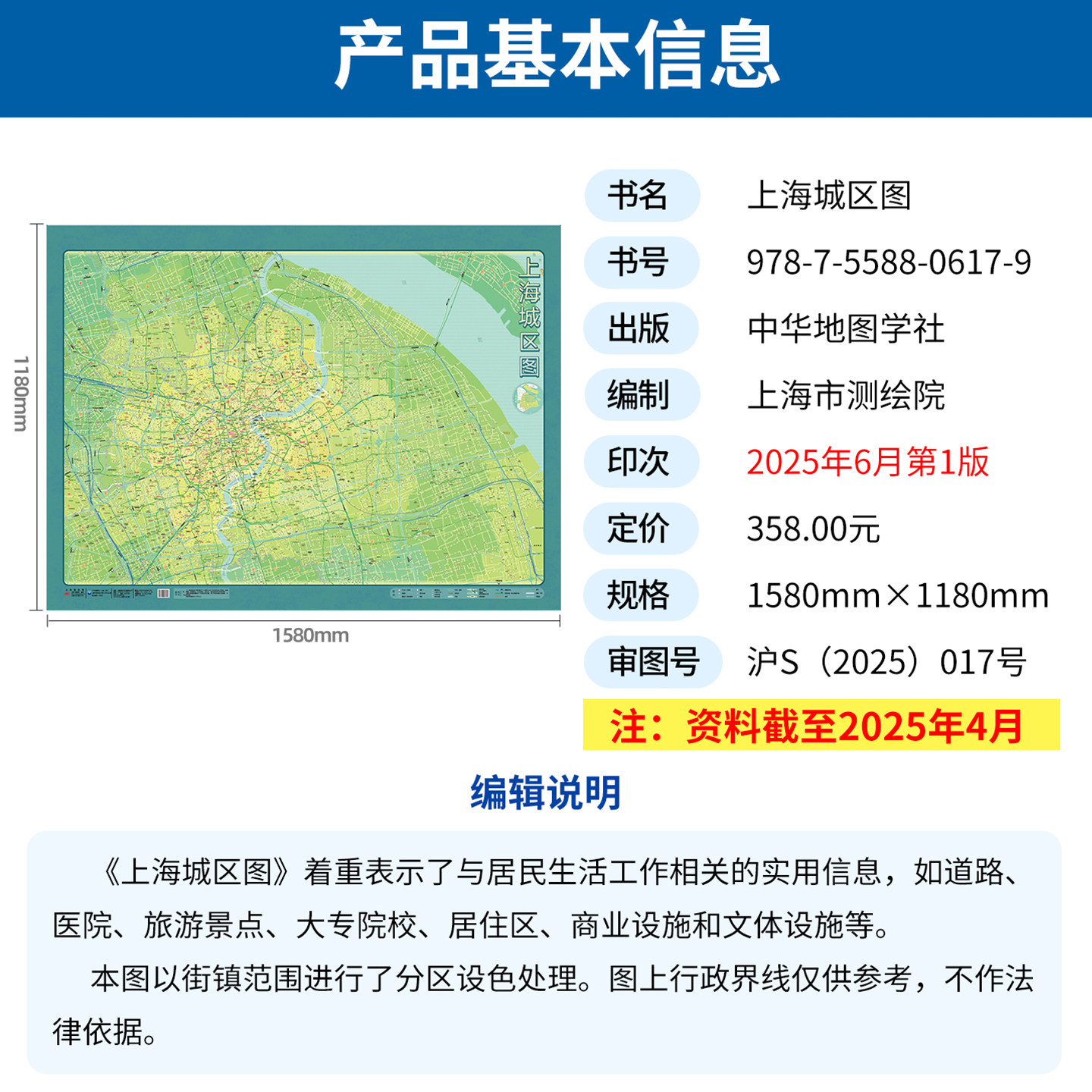 上海城区图 防水覆膜加厚领导办公室墙面大尺寸高清 上海市测绘院编制 市区内环线内信息详细 中华地图学社 轨道交通 2025新版