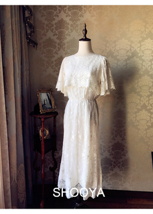 花烛泪 复古宫廷重工收藏蕾丝鱼骨连衣裙轻婚纱礼服 法式