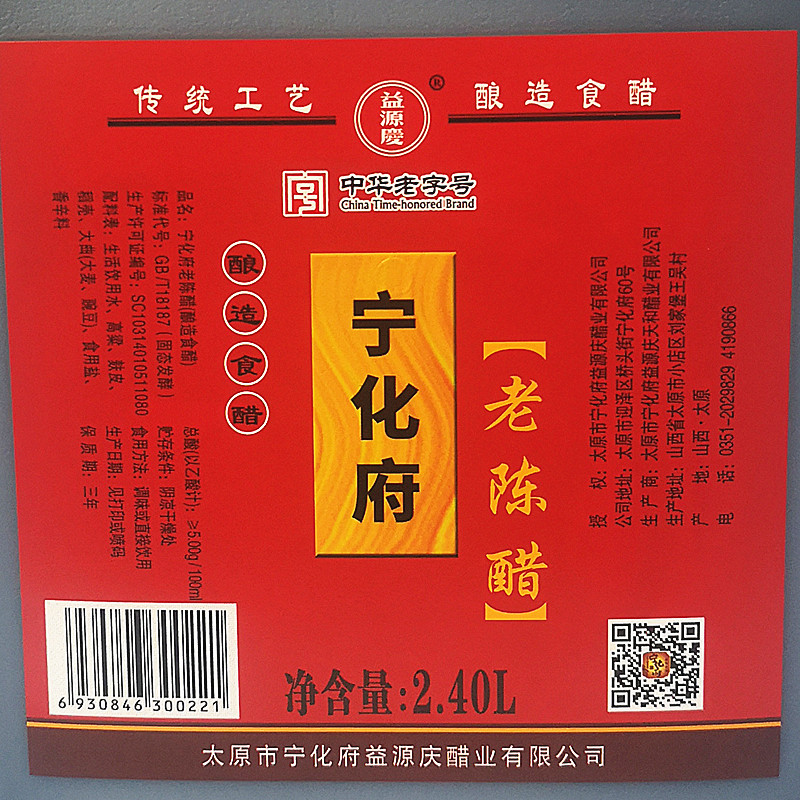 老陈醋2.4L 溢源庆 2400ml 5斤装 宁化府 特产 山西特产 包邮