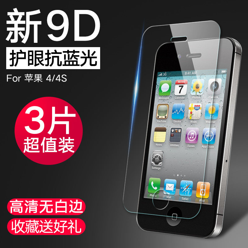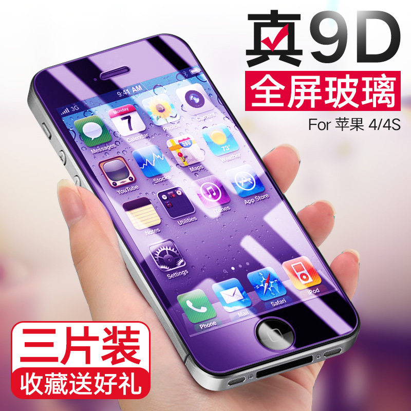 适用苹果4s钢化膜全屏iphone4刚化玻璃 高清抗蓝光手机保护贴膜覆盖保护膜手机膜四