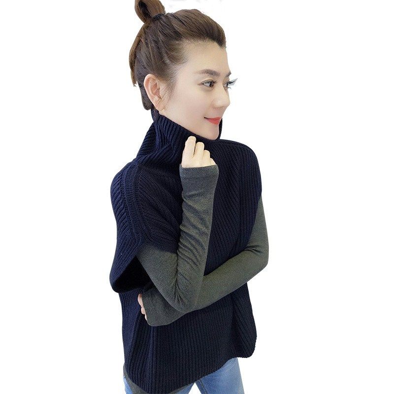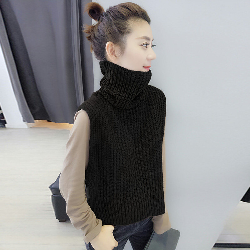 新款 宽松毛衣背心高领针织马甲外搭坎肩 秋冬女欧洲站欧货潮韩版
